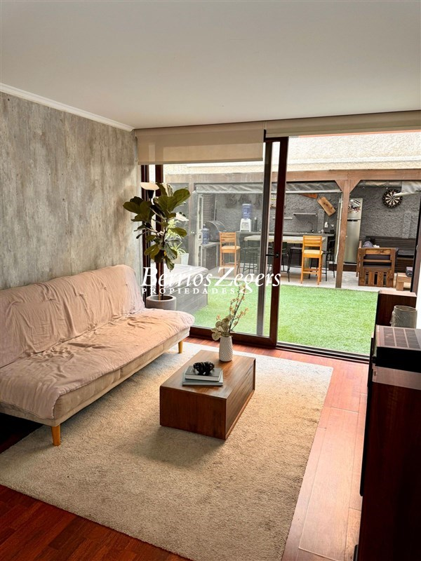 Excelente depto. 120m2 totales ;60m2/60m2 Aproximados (entregado por dueño) Depto. con jardín; 2 dormitorios en suite, principal con w-closet. Cocina integrada, completamente equipada, living con salida jardín con quincho y terraza, comedor. Todo el depto. con ventanas termo panel. Tiene conexion para lavadora. Cuenta con estacionamiento y bodega. Edificio tiene estacionamientos de visita, lavanderia, conserjeria. Excelente ubicacion, cercano a mall Alto las Condes.