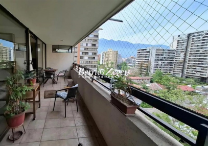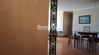 113/128 m2 Estupendo departamento con vista despejada, muy buena conectividad.Hall de entrada con closet; recibos juntos, cocina con comedor de diario; logia; dependencias de servicio completas.3 dormitorios, principal en suite, con baño completo con vanitorio de cubierta de mármol gris, closets de muy buen tamaño; 2 dormitorios grandes (en ambos cabe cama doble y escritorio), que comparten 1 baño completo con vanitorio de cubierta de mármol gris.Piso flotante en muy buen estado de conservación.1 estacionamiento y una amplia bodega con repisas, ambos en primer subterráneo.Edificio con acceso a Recepción con seguridad 24/7, con estupendos espacios comunes; gym, Sauna, Sala de Cine, Sala de párvulo, Sala Multiuso, Piscina para niño y adultos, sector de pasto y jardín formado, camarines, quincho techado en Terraza del edificio con una vista maravillosa.Estacionamientos de visitas con cámaras de seguridad.