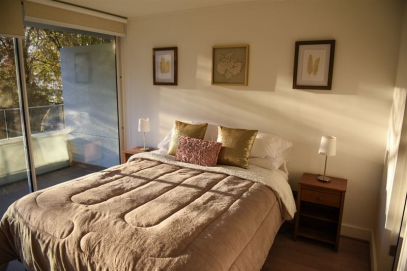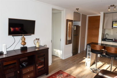 Amoblado, recibo, cocina americana, dormitorio en suite, estacionamiento