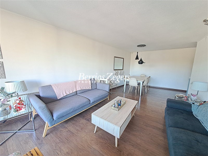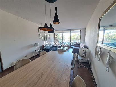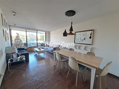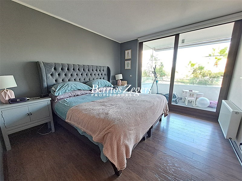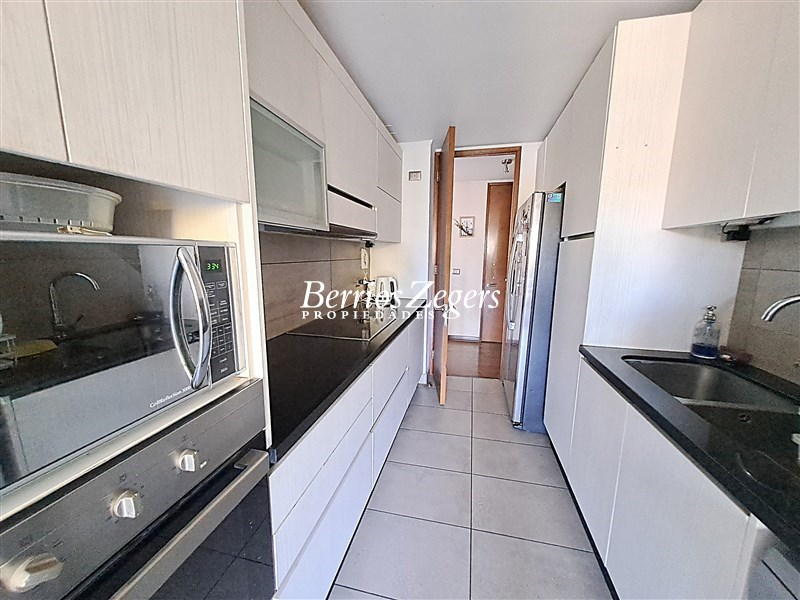 Excelente departamento en venta, amplia terraza, 3 dormitorios, 3 baños, impecable, full eléctrico, ubicado en calle tranquila a pasos de metro Los Domínicos.Hall de acceso, living comedor con salida a terraza, cocina con cubiertas de granito, logia incorporada, baño de visitas, sala de estar, dormitorio principal en suite con walking closet, otros dos dormitorios que comparten un baño.Amplia terraza, ventanas termopanel, calefacción por radiadores, 2 estacionamientos subterráneos, 1 bodega.El edificio cuenta con piscina exterior y otra climatizada, quincho, salón multiusos, estacionamientos de visita.