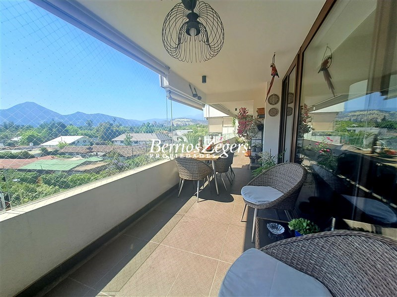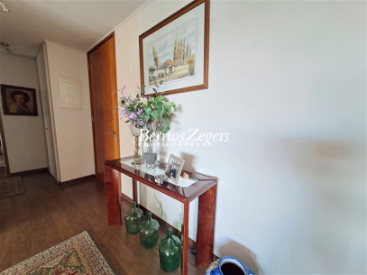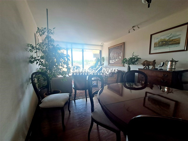 Excelente departamento en venta, amplia terraza, 3 dormitorios, 3 baños, impecable, full eléctrico, ubicado en calle tranquila a pasos de metro Los Domínicos.Hall de acceso, living comedor con salida a terraza, cocina con cubiertas de granito y comedor de diario, logia incorporada, baño de visitas, sala de estar, dormitorio principal en suite con walking closet, otros dos dormitorios que comparten un baño.Amplia terraza, ventanas termopanel, calefacción por radiadores, 2 estacionamientos, 1 bodega amplia.El edificio cuenta con piscina exterior y otra climatizada, quincho, salón multiusos, estacionamientos de visita.