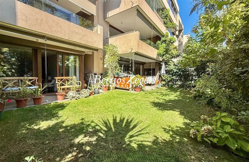 Departamento Duplex con jardin en San Carlos de Apoquindo, con seguridad las 24 hrs, en condominio, con piscina y quincho, moderno, bien ubicado con respecto al sector, cercano a Universidades, colegios y supermercado, y acceso rapido a la Autopista.Nivel 1: hall de entrada, recibos amplios con vista al jardin privado con salida a terraza techada con quincho, cocina amoblada y equipada con comedor de diario, lavadero y servicios.1 nivel inferior: 2 salas de estar, una muy amplia usada como gym y otra mas pequeña, dormitorio en suite, 2 bodegas interiores.Condominio con piscina temperada, club house, areas verdes y zonas para caminar, bicicletero, estacionamientos de visitas.Caracteristicas Generales: 300 mtrs , 240 mtrs util, 60 mtrs terraza, calefaccion por radiador, ventanas termopanel PVC, pisos de porcelanato y flotante, 2 estacionamientos, 2 bodegas,GComunes incluyen calefaccion,agua caliente y mantencion de su jardin ($500.000 aprox).AGENDA TU VISITA