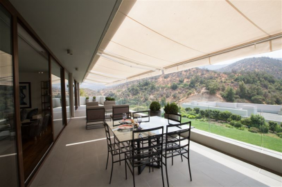 Vista el Valle es un exclusivo proyecto diseñado con una cuidada arquitectura que se adapta al recorrido natural del cerro más alto de La Dehesa, siguiendo sus pendientes con senderos rodeados de áreas verdes, sobre un terreno de 21.400 m2. donde la paisajista María Elena Raab creó armoniosos parajes.Con tres edificios de arquitectura moderna, y solo 2 departamentos por piso, los departamentos fueron pensados de amplios espacios que permiten variadas actividades en familia, y que invitan a realizar vida al aire libre rodeados de un extenso parque. Vista El Valle, una experiencia para vivir y disfrutar.El departamento tiene 235 m2 y una terraza de 77 m2.Recepción luminosa que invita a un living comedor con vista privilegiada. Hall amplio, baño de visita con papel mural decorativo. Terraza con diseño de jardineras integradas al paisaje natural. Living y comedor principal muy amplio integrado a la vista del paisaje con la terraza y el quincho.Cocina amplia con vista a jardineras y comunicación al quincho en la terraza. Muebles de alta calidad y diseño, con espacio para que la cocina sea un lugar de encuentro, con sector respostero y sector comedor de diario.Sala de estar en el área de las habitaciones con amplio espacio que invita a compartir.Dormitorio principal con ventanal a la terraza y ventana orientada al poniente con lámina 3D, walk in closets muy amplios con impecable diseño en los detalles.El baño principal con sector ducha y WC separado y tina de diseño. Mesada con doble lavamanos.Dormitorios amplios con vista y salida a la terraza, closets de alta calidad, con baño completo.El edificio consta de amenities; sala de reunión, hermosa terraza con quincho, área solarium y piscina, todo integrado a la vista privilegiada que brinda la naturaleza.Estacionamientos de visita y seguridad con sistema de vigilancia 24/7.Todo el departamento tiene pisos de madera, sistema termopanel, mesadas de cuarzo MK, revestimiento de mármol en los baños.Calefacción con caldera individual y sectorizada en 3 zonas.El valor publicado incluye 3 estacionamientos y una bodegaEl Precio desde UF23.800 hasta UF26.300 dependiendo piso.DISPONIBILIDAD INMEDIATA