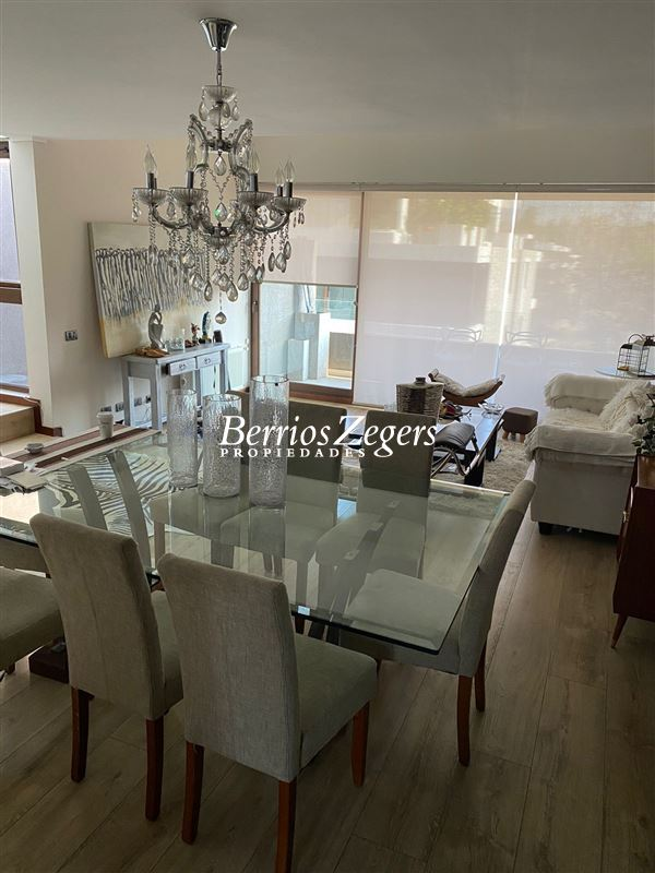 210 metros aproximados, EXCELENTE TRIPLEX ,muy bien ubicado, cercano al Portal La Dehesa, primer nivel: hall de entrada, living- comedor, baño de visitas, cocina equipada, logia, servicios completos. Nivel bajo: 3 dormitorios, dormitorio principal en suite, 2 baños, sala de estar. Nivel superior: Amplia terraza techada con vista despejada, parrilla, jacuzzi. Calefacción por radiadores, ventanas termopanel, 2 estacionamientos, 1 bodega. Edificio cuenta con piscina.