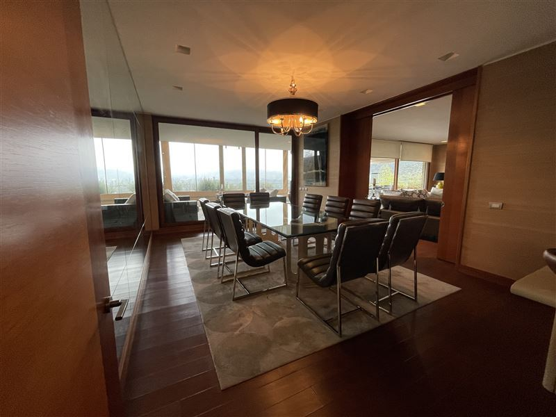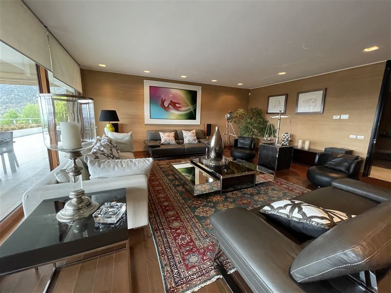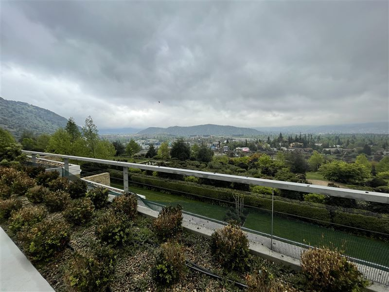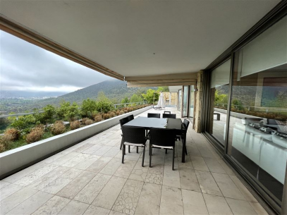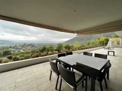Mirador Sta Anita Vista Oriente a la cordillera , exclusivo departamento , como nuevo, 500 m2 aprox mas 300 m2 terrazas. Total 800m2 aprox . Todo con ventanas termopanel.Acceso pallier privado, entrada amplio hall piso mármol, recibos separados piso madera, salida a terraza con piscina privada y temperada con bomba calor, 3 suites, ppal. muy grande con 2 walk-in closet y 2 baños completos jacuzzi y ducha.Baño visitas. Cocina con Isla, completamente equipada , comedor diario, gran repostero , 2 dormitorios de servicios, pieza de planchado. Calefacción losa radiante, domótica. 4 estacionamientos, 2 bodegas.Gastos comunes $1.100.000 aprox. Cuota contribuciones $2.400.000 aprox