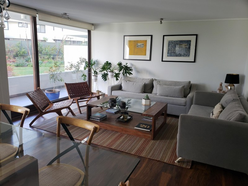 Información general:138/20 mts2 aprox Departamento ubicado en sector central de la Dehesa con 3 dormitorios (p/p en suite) sala de estar, 2 baños{ Hall de entrada amplio con ventanal, living y comedor con salida a terraza grande con vista al jardín, dormitorios con salida a terraza, dormitorio principal con walking closet , cocina full equipada, logia techada y amplia con buenas ventanas, sala de estar amplia.El edificio cuenta con piscina. gimnasio, sala de eventos, áreas verdes, varios estacionamientos de visitas, Departamento a pasos del portal La dehesa con 2 estacionamientos y bodega. Sector con muy buena