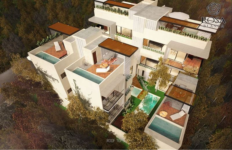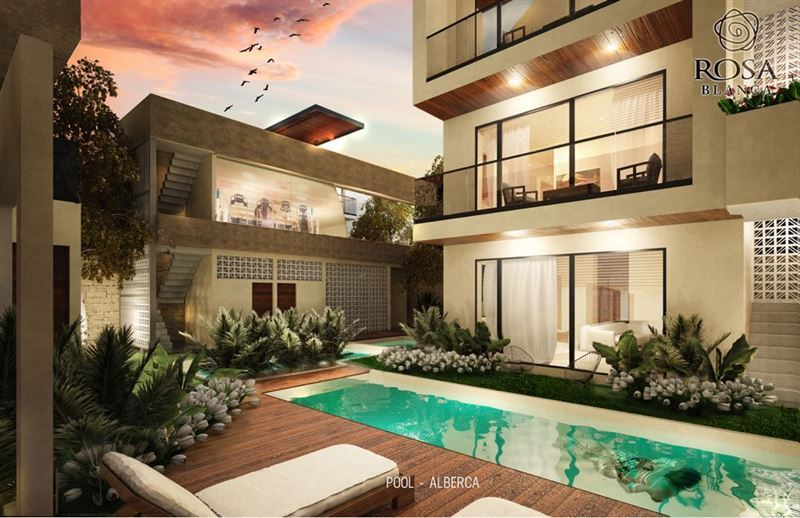 Rosa Blanca constituye la segunda etapa de une gran desarrollo inmobiliario llamado Las Rosas Condos, integrado por 8 condominios, hoteles y casas privadas de la mas alta calidad y con amenidades de primer nivel, todas con el nombre dedicado a esa magnifica flor .Amenidades :- Areas verdes- Gimnasio totalmente equipado - Solarium - Albercas - Rooftop- Jacuzzi- Concierge- EstacionamientoUNIDADES Planta baja :- 1 recamara -- 59, 54m2 ( terraza 6, 20m2 - jardin 2, 50m2 ) 112 200 USD - 1 recamara -- 66, 04m2 ( terraza 4, 15m2 - jardin 11, 05 ) 117 500 USD - 1 recamara -- 60, 84m2 ( terraza 5, 40m2 - jacuzzi 4, 60m2 ) 122 400 USD- 1 recamara -- 61, 19m2 ( jardin 7, 15m2 - jacuzzi 3, 20m2 ) 122 400 USD - 1 recamara -- 77, 13m2 ( jardin 17, 83m2 - jacuzzi 3, 65m2) 132 600 USDPRIMERO PISO- 1 recamara -- 55, 72m2 ( balcon 4, 88m2) 107 100 USD- 2 recamara -- 108, 81m2 ( terraza 28, 55m2 ) 153 000 USD