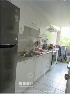 Luminoso y acogedor. 3er. Piso sin ascensor. Vista Norte. Recibos amplios, piso flotante. 2 dormitorios, principal suite. 2 baños. Cocina tradicional, logia incorporada. Estacionamiento. Bodega. Piscina.