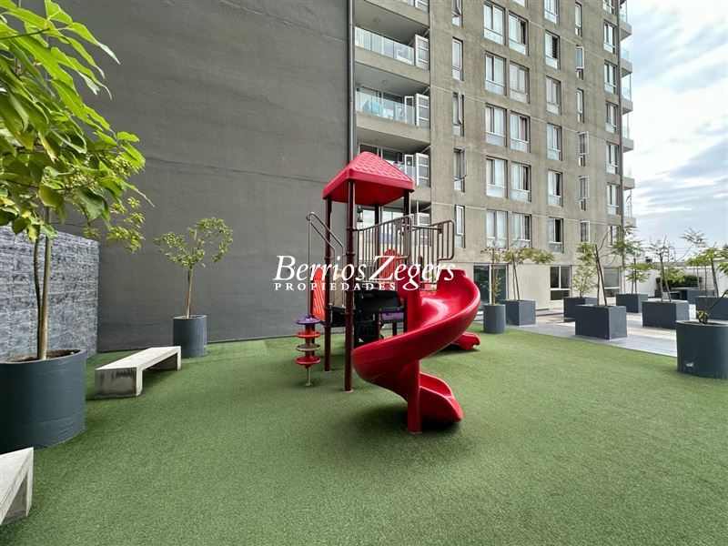 Lindo departamento cercano supermercado, hospitales, notaria, metro, sala con cocina americana , un dormitorio en suite.el Condominio cuenta con quinchas, jardines amplios, piscina, juegos infantiles , sala multiuso