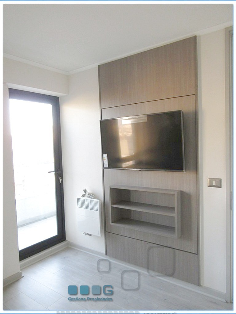OJO Permite novar C.Hip tasa 2,9%. Hermoso. Recibos luminosos, salida a terraza. 1 dormitorio con closet, 1 baño. Cocina americana semiequipada, encimera, campana, horno. Espacio para instalar lavadora. Rack con equipo de TV. Estacionamiento.