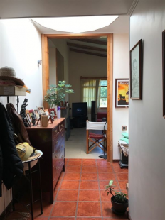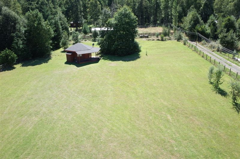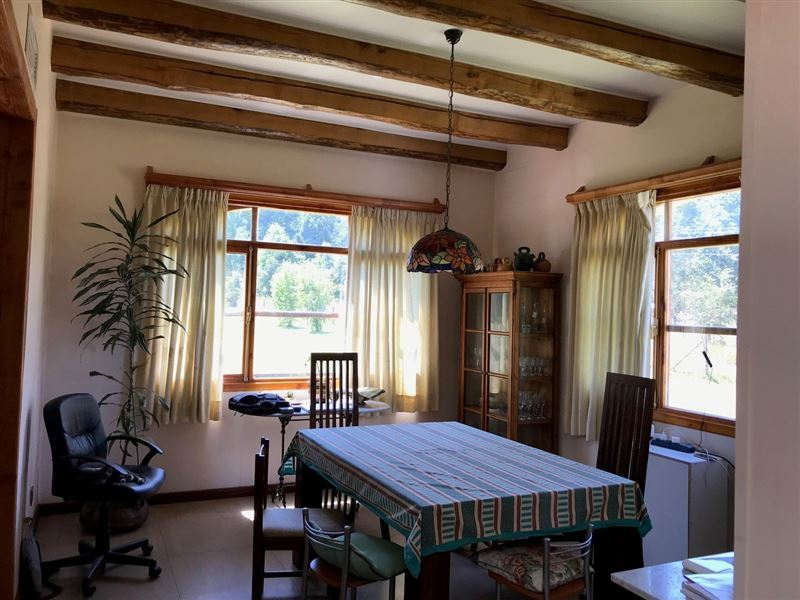 Parcela de 5700m2 con casa de 210 m2 estándar europeo, suite con baño más tres dormitorios, living y comedor separado, recibidor, terraza cubierta, cocina con isla, cocina encimera y horno empotrado más cocina a leña de última generación con control de temperatura, alacena independiente, loggia y estacionamiento cerrado tipo garaje casa americana, termopanel, aire acondicionado en cada habitación y con aislación con eficiencia energética, posee una lucarna maravillosa en el recibidor.A demás tiene una cabañita de 30m2 de un dormitorio con baño y cocina americana amoblada de madera de forma hexagonal.El acceso es con portón eléctrico, el sector es tranquilo y seguro. Tiene agua propia (pozo con sala de estanque)