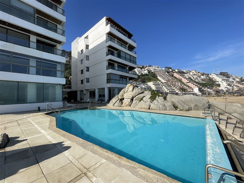 Departamento muy amplio, espectacular vista al mar y a la playa Reñaca, en 1era linea del borde costero, ubicacion insuperable.Hall de entrada , amplios recibos con salida a terraza, 4 dormitorios (2 en suite) 4 baños (1 de visita ), cocina amoblada y equipada con comedor de diario,lavadero,servicios. Gran terraza panoramica a lo ancho y largo del departamento sobre la playa,calefaccion por radiador a gas, 2 estacionamientos , 1 bodegaEdificio cuenta con 2 piscinas, una exterior sobre el mar y la otra interior temperada con vista al mar, sauna, jacuzzi y una sala de reuniones.Conserjeria y Seguridad las 24 horas.AGENDA TU VISITA Y TE SORPRENDERAS