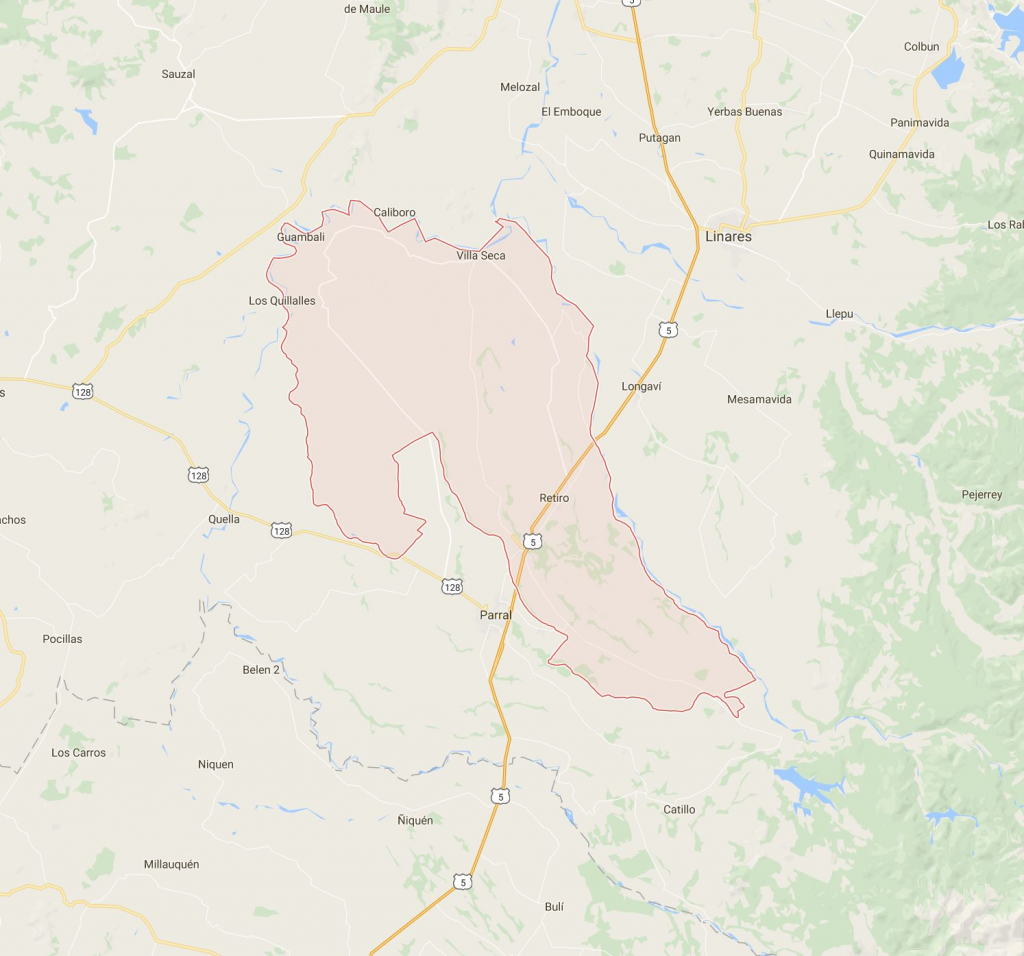 Parcela con casa de 350 m2 y 12.000 metros de terreno. Camino El Ajial. Comuna de Retiro, cerca de Parral, Provincia de Linares.