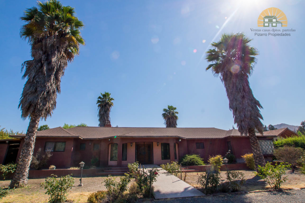 Vendo hermosa parcela que tiene de terreno aproximadamente 6.700 mts2, con una amplia, cómoda y exquisita casa, de 140 mts2 construidos que tiene de todo. Chimenea, logia, despensa, sauna, Jacuzzi, cocina amoblada, 4 dormitorios todos closet y dos en suite, 3 baños, sala de estar, living y comedor por separado, piscina, estacionamiento de autos techado, entrada con portón eléctrico y cámara de vigilancia, bodegas. El terreno de casi 7.000 mts2 está bien cerrado, con un gran muro y portón eléctrico como entrada principal a la propiedad, sus deslindes son todos cerrados con alambrada y árboles que ayudan a la privacidad y seguridad. Tiene pasto en casi toda su extensión. Varios árboles ornamentales en la entrada, pinos, palmeras y otras variedades. En la parte trasera de la parcela, encontramos más palmeras y arboles frutales, tales como damascos, peras, manzanas, limones, naranjas y parras. Más al final de la propiedad existe una explana libre de grama, donde se puede hacer cualquier tipo de actividad al aire libre. Una parcela ideal para una familia que ame el aire libre pero que disfrute también dela comodidad de un buen hogar, pensado y diseñado para estar tranquilo y compartir con los que más amas. Simplemente un propiedad perfecta. La parcela está ubicada por Camino Lo Ermita, a la altura del paradero 4 de Camino Lonquén, cerca muy cerca, caminado al Colegio Felipe Diacono, de Calera de Tango. Tiene de todo cerca a menos de 15 minutos del mal Plaza Oeste. Se vende atraves de gestión inmobiliaria