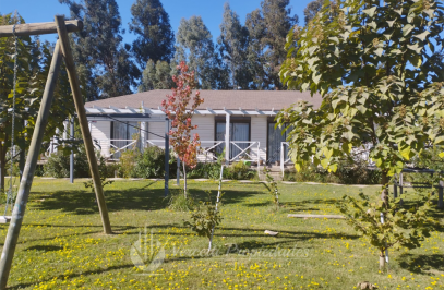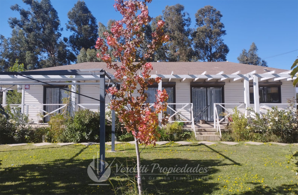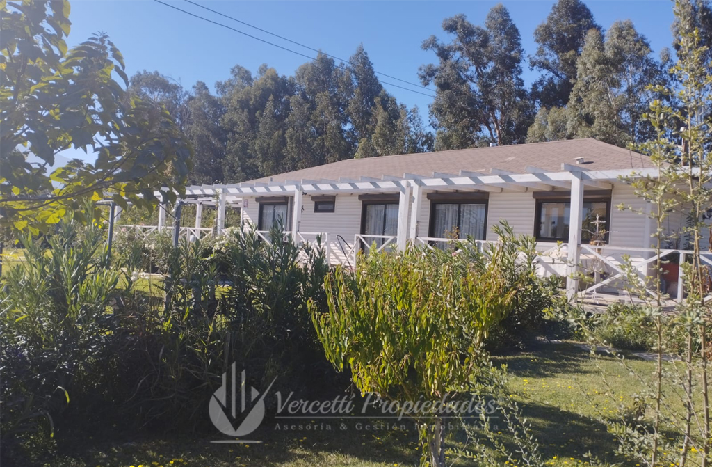 Hermosa Parcela de 5.600 m a 10 Minutos del Casino Monticello Propiedad única que combina comodidad, diseño moderno y naturaleza, con excelente conectividad a Santiago por autopista. Casa Principal (105 m) 3 dormitorios (principal en suite con walk-in closet y aire acondicionado). 2 baños completos + baño de visitas. Living-comedor amplio, cocina americana equipada con hornos a gas y eléctrico, y campana. Terraza de 25 x 3 m con vistas al jardín. Ventanas termopanel, piso flotante, cortinas metálicas eléctricas y calefacción a leña. Casa de Huéspedes (46 m) 2 dormitorios (estilo mariposa), 2 baños completos, living con cocina equipada. Aire acondicionado, ventanas termopanel y terraza. Ideal para arriendo en Airbnb (rendimiento comprobado). Exterior Piscina privada (8x4 m), jardín con árboles frutales, ornamentales y viñedo con 300 parras de Cabernet Sauvignon y Syrah. Pozo profundo, riego automático, bodega, leñera, canil y dos fogones. Seguridad y Accesos Portón automático, cámaras de seguridad y luces con sensor. Cierre perimetral con cerco vivo. Ubicada en un sector tranquilo, ideal para disfrutar de la naturaleza o invertir. Documentación al día y rol propio! Agende su visita,